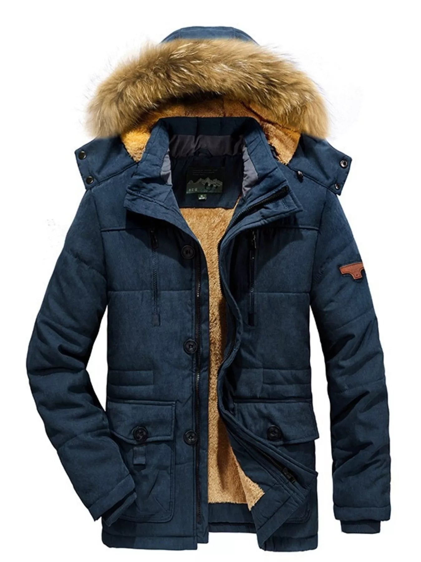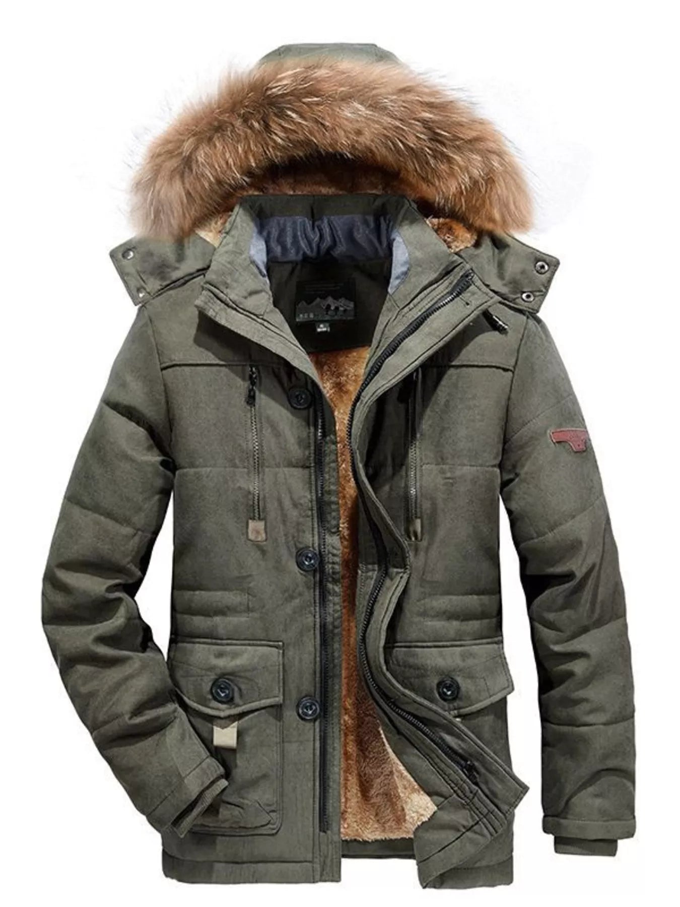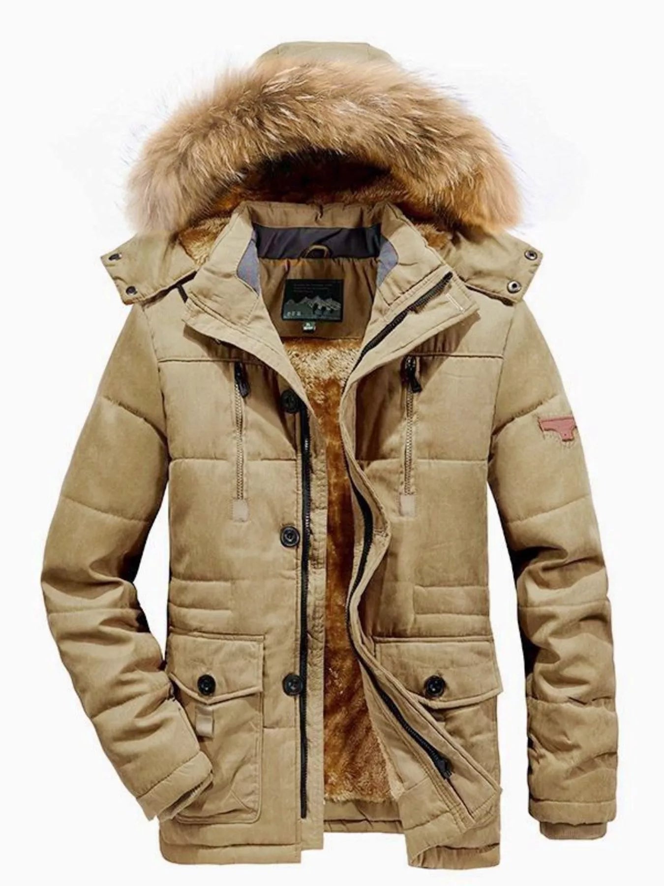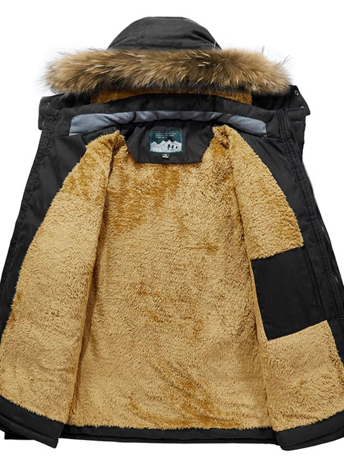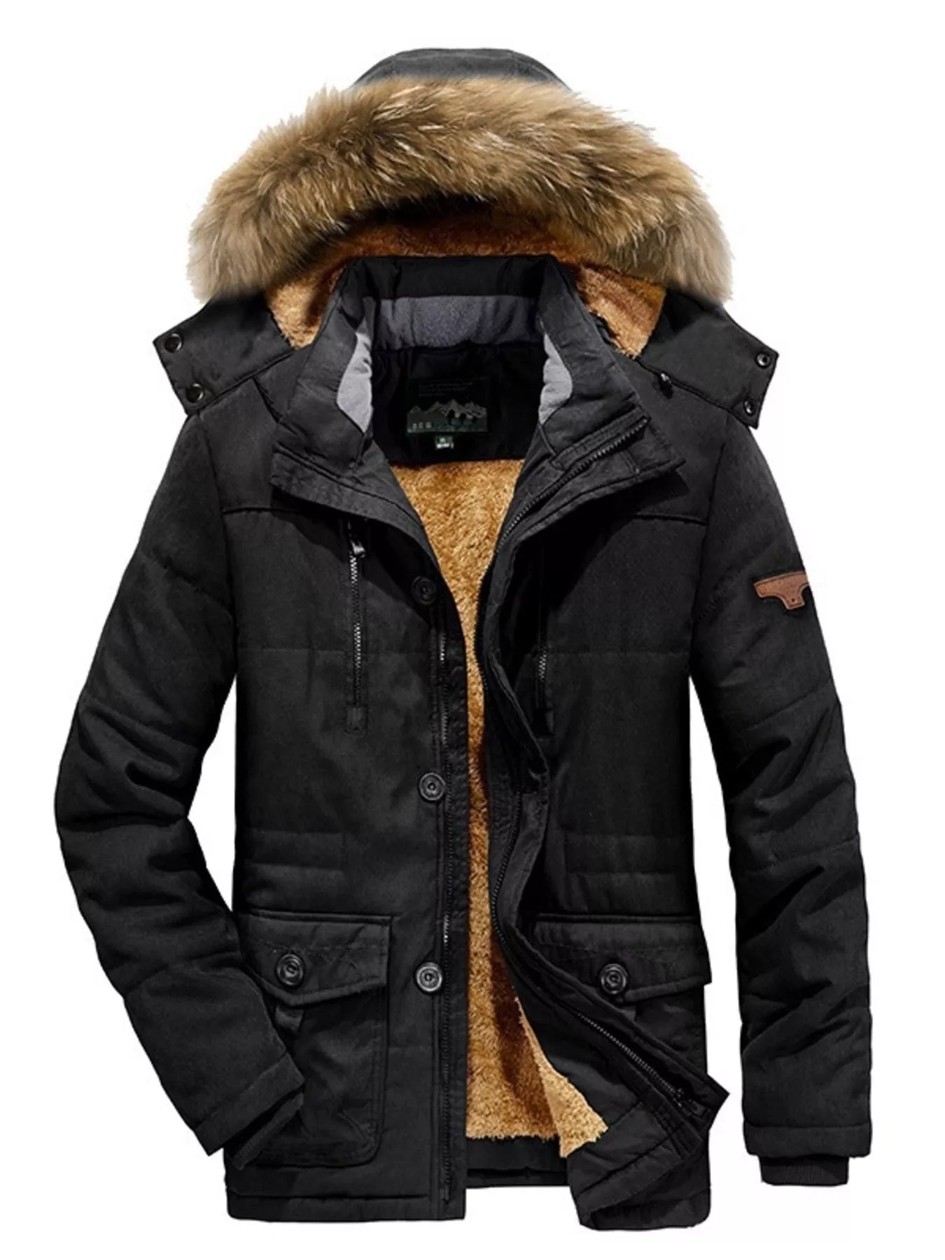 Men's Plus Size Winter Warm Zip Up Coat with Fur Hood